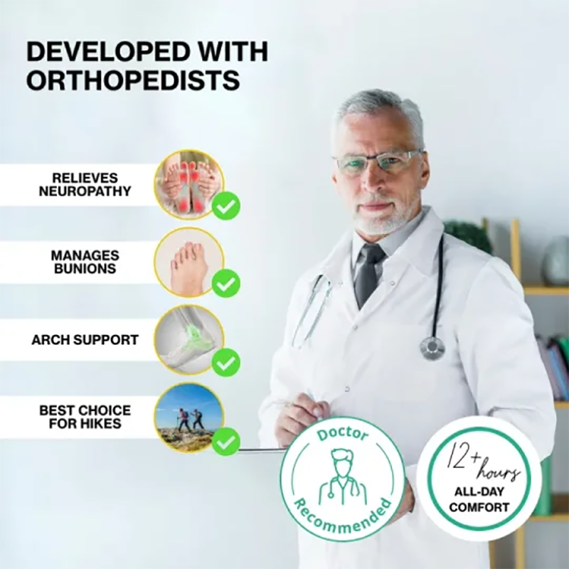 With a wide toe design, it ensures your toes have more room to move freely without feeling crowded. Perfect for people with wide feet or foot problems like bunions, it reduces pressure and discomfort, allowing you to focus on your activities.
