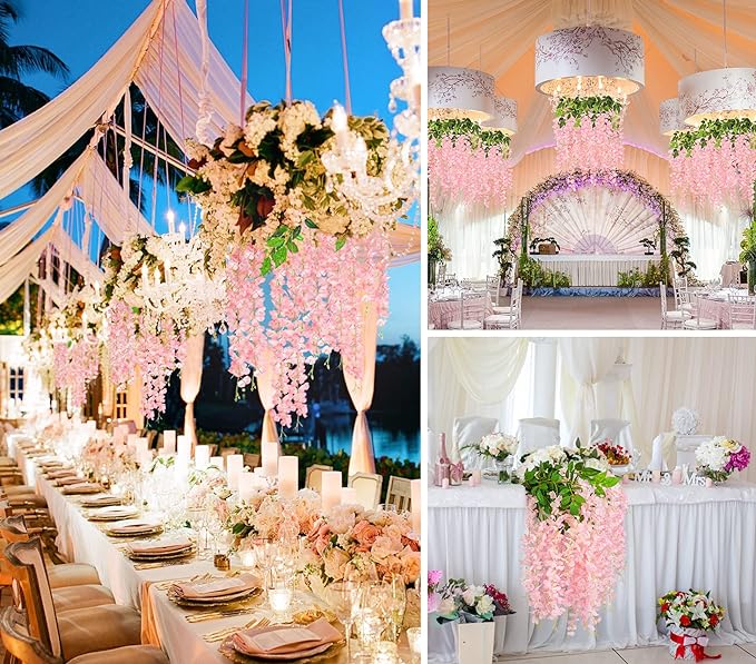Realistic and Natural:Â Hanging Wisteria Artificial Flowers are well made and vibrantly colored - look and feel just like real flowers, Pure natural style, simple and elegant. Flows gracefully downward from the main heart of the plant to create the appearance of overflowing.